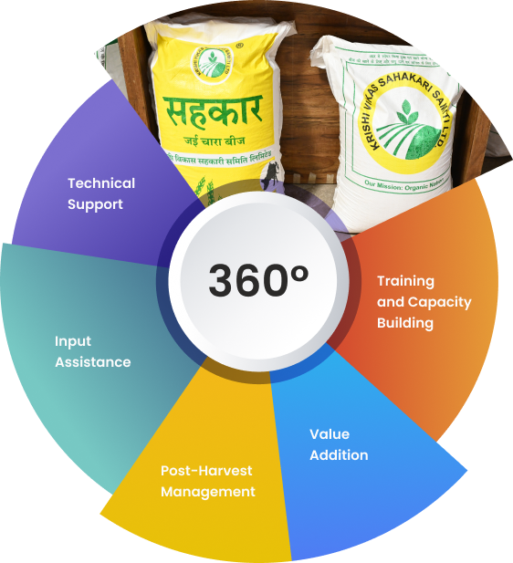 We cultivate a thriving agricultural ecosystem by empowering farmers and stakeholders with comprehensive seed-to-sale solutions that prioritize sustainable practices, including organic farming, fostering resilient livelihoods.